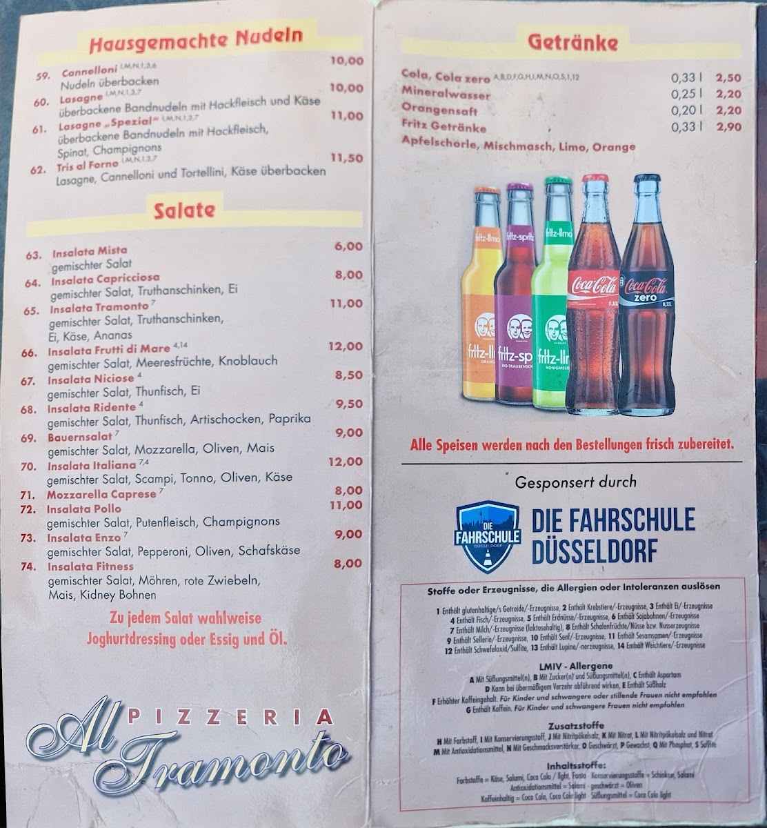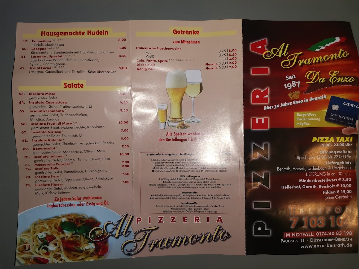 Welcome to Al Tramonto da Enzo, a charming eatery nestled in the heart of Düsseldorf at Koblenzer Str. 24. This pizzeria is celebrated for its authentic, delicious offerings and warm ambiance. Customers rave about their thin-crust pizzas, particularly the quattro formaggi, which is loved for its perfect texture and flavorful cheese.